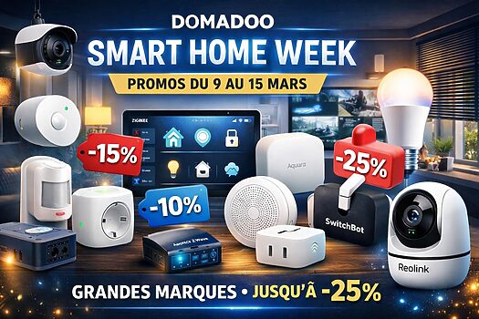 La Smart Home Week organisée par Domadoo est l’un de ces moments de l’année où l’écosystème domotique devient soudain beaucoup plus accessible. Le distributeur français, bien connu des passionnés de maison connectée et des installateurs, propose cette semaine une série de promotions intéressantes sur de nombreuses marques incontournables du secteur. L’opération se déroule du 9 au 15 mars, avec des remises qui peuvent grimper jusqu’à 25 % selon les fabricants.