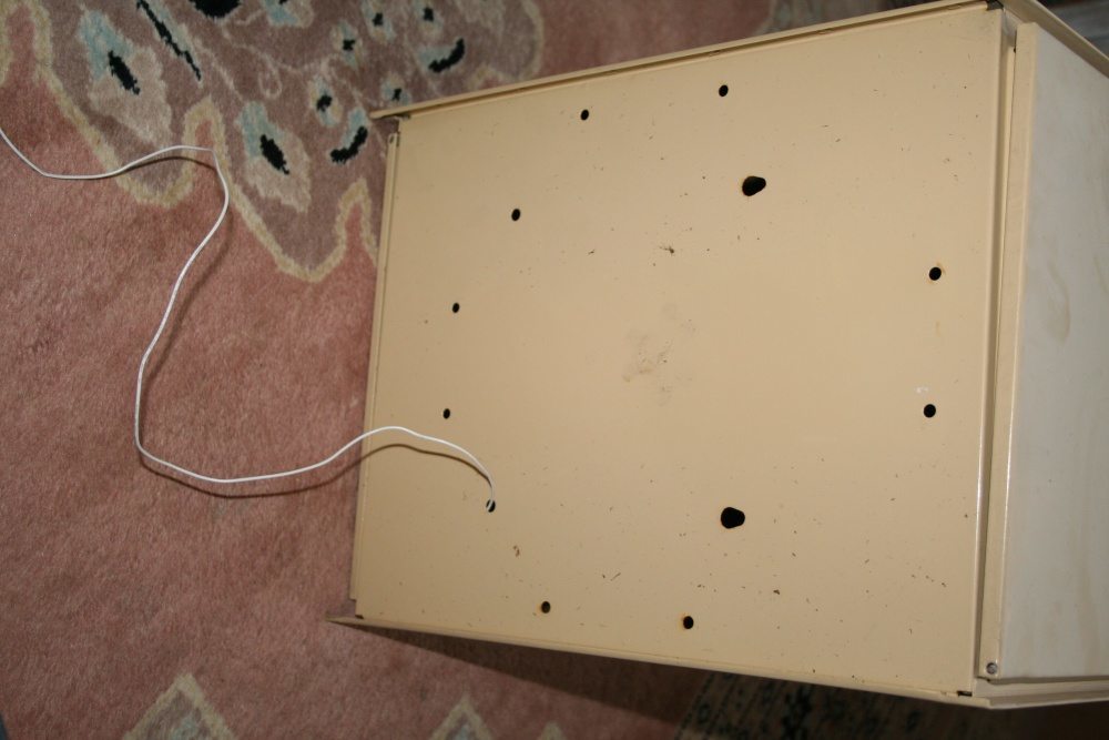 A gauche se trouve le détecteur d’ouverture pour la porte. L’autre bloc, plus gros, contenant les piles, sera fixé à l’intérieur: