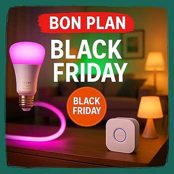 Les éclairages Philips Hue restent une référence pour la maison connectée. C’est fiable, bien suivi, compatible avec à peu près tout (Alexa, Google, HomeKit, Matter, Home Assistant…), et surtout très agréable à utiliser au quotidien. Le défaut habituel, c’est le prix. Justement, le Black Friday sert un peu à ça : rendre ces produits beaucoup plus accessibles, surtout via les offres Amazon.